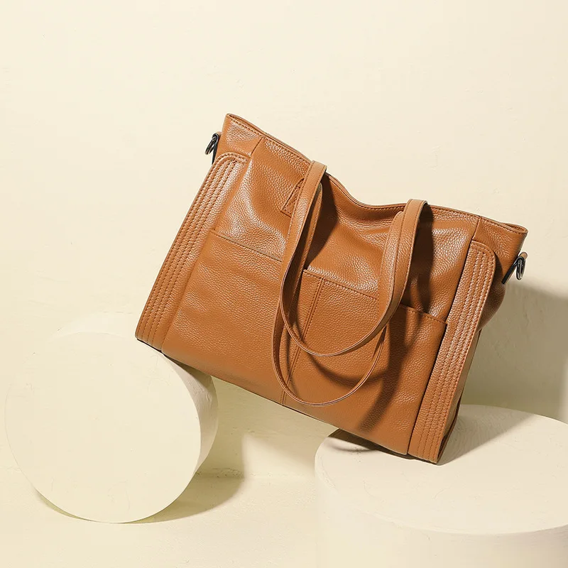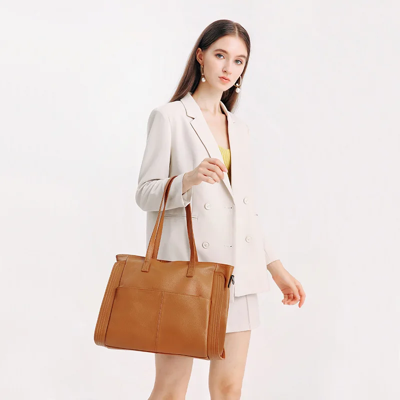 Luxury Cowhide Leather Women Laptop Tote Bag